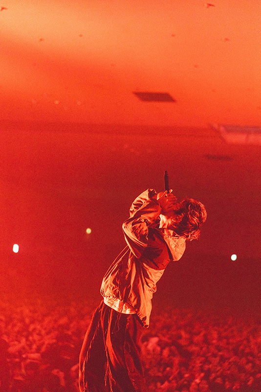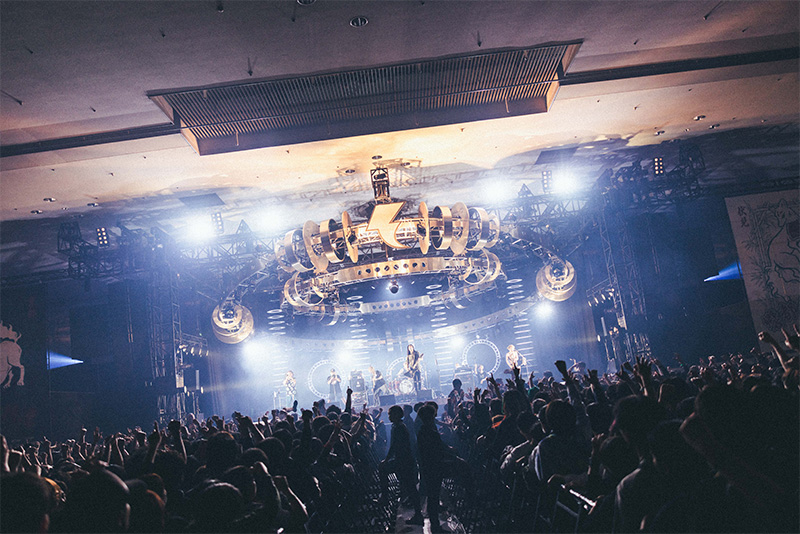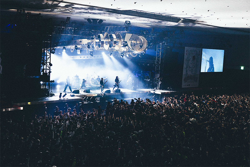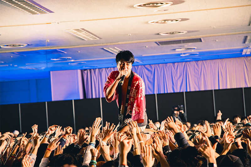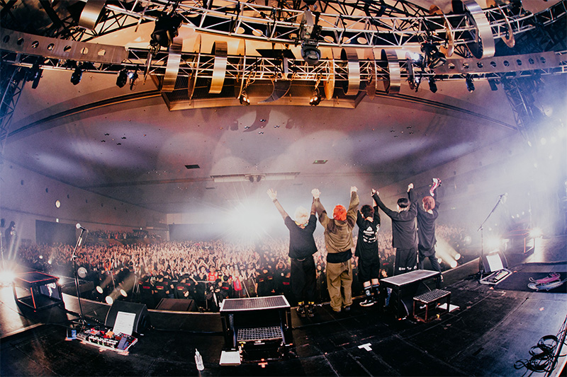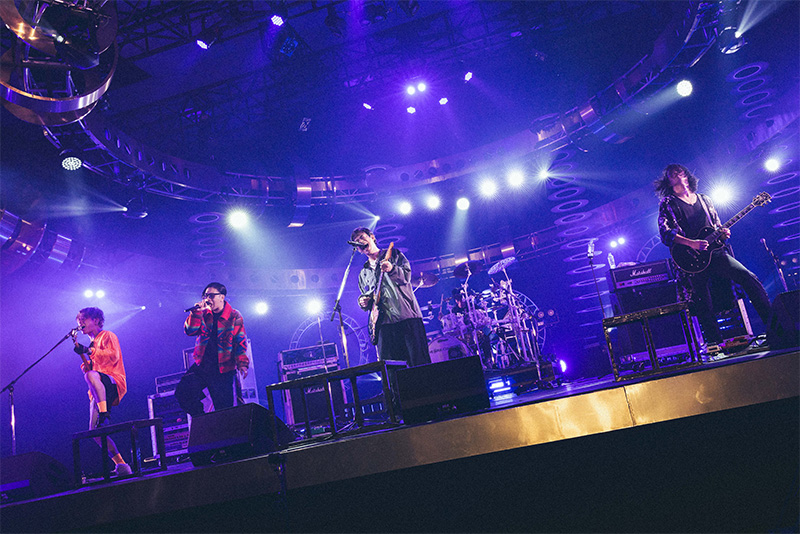 ステージ左右に据え付けられたビジョンに「夢幻獄」のMVが流され、強烈な音の圧力と貫通力の高い歌に圧倒される。そしてステージの5人が1つになって音を放った「世界の終わり」のインパクト。出演者たちが口を揃えて「ROTTENGRAFFTYのような先輩がたくさんライブをするからこっちは休めない」と言っていたように、歴戦のライブで鍛え抜かれた5人のアンサンブルは最強で、バンドとしての表現力の幅と奥行きを見せつけられて舌を巻く。