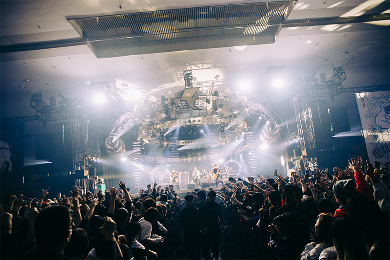 山中拓也(Vo./G.)は「俺らにトップバッター任せて良かったとしっかり思ってもらえるように。そして去年のリベンジをここで果たせるように」と気合い一閃「Shala La」でライブスタート。オーディエンスとの完璧な掛け合いから金閣は巨大な一体感に包まれ、客席と共にライブを作り上げていく美しく激しい景色が描き出される。