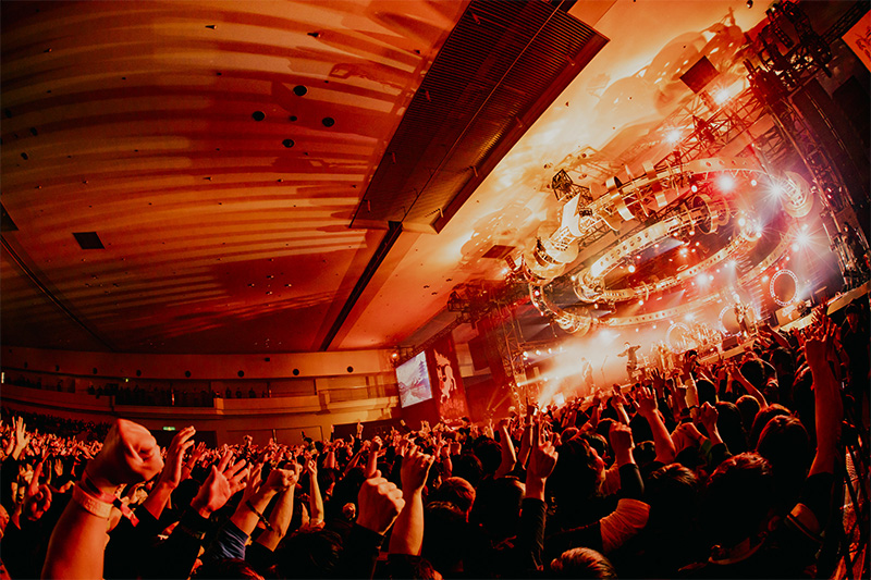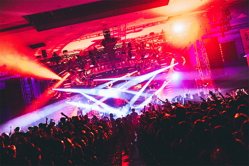 N∀OKIが「まだ感じたことが無いところまで、果てまで、音楽で共に行こう!」と力強く叫び、「この曲に何度も救われた。心の根で聴いてくれ! 感じてくれ!」と言って突入した「マンダーラ」。Dragon AshのKjも途中で参加し、同曲に込められたその想いの強さに触れて胸が締め付けられ、心が震える。その後、当フェスの代名詞とも言える「響都グラフティー」へと続き、客席からは大きな大きな歓声が湧き起こり、会場が得も言われぬ高揚感に包まれていく。