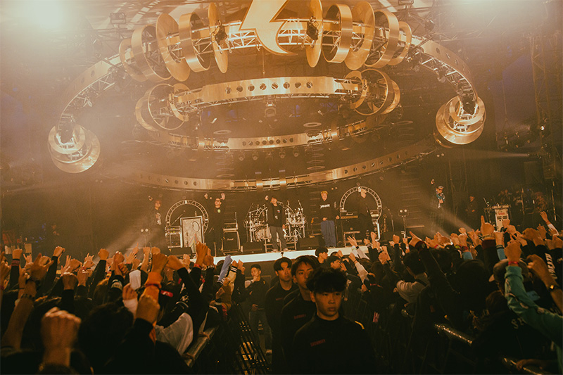ライブを再開した彼らは怒涛の波状攻撃でオーディエンスを再び熱狂の渦に落とし込む。彼らの鍛え抜かれた演奏力を持って鳴らされる「DO THE DANCE」「Blah Blah Blah」はライブで真価を発揮し、モッシュ、ダイヴ、ウォールオブデスが乱発して金閣ステージは手が付けられない沸騰状態に。ラストは「f.a.i.t.h」を全力で演り抜いてステージを去っていった。